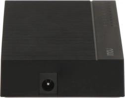 Urządzenie jest niezarządzalne, więc działa od razu po podłączeniu (Plug & Play) i nie wymaga sterowników. Oferuje przepustowość 1,6 Gb/s, bufor 768 Kb, obsługę Jumbo frame 2K oraz tablicę MAC 2K. Ochrona przeciwprzepięciowa do 2 KV (tryb wspólny) i 1 KV (różnicowy) zwiększa odporność w bardziej wymagającym środowisku.