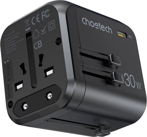 Choetech PD5008 oferuje cztery różne wtyki, które pozwalają na użycie w ponad 200 krajach, co jest idealnym rozwiązaniem do podróży międzynarodowych. Z jego pomocą łatwo naładujesz smartfony, tablety i inne urządzenia elektroniczne. Wydajne połączenie 3 portów USB-A i portu USB-C umożliwia jednoczesne ładowanie wielu urządzeń.