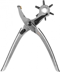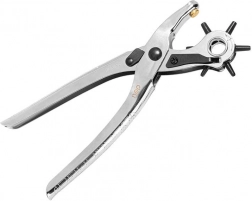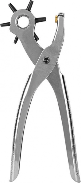 Uniwersalny dziurkacz z obrotową tarczą pozwala szybko wybrać pożądany rozmiar otworu: 2 / 2,5 / 3 / 3,5 / 4 / 4,5 mm. Idealny do modyfikacji skórzanych pasków, toreb, obroży, a także tkanin i cieńszych materiałów. Ergonomiczna konstrukcja zapewnia wygodne i precyzyjne dziurkowanie bez strzępienia krawędzi.