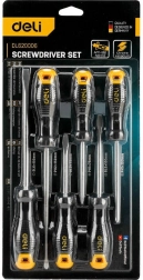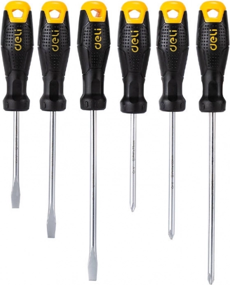 Praktyczny zestaw 6 precyzyjnych śrubokrętów DELI TOOLS do domu i warsztatu. Oferuje magnetyczne końcówki, stal chromowo-wanadową dla wysokiej trwałości oraz antypoślizgowe rękojeści dla wygodnego i bezpiecznego użytkowania.