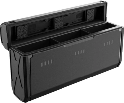 Ładowarka Telesin potrafi ładować trzy akumulatory jednocześnie, co pozwala szybko i efektywnie przygotować się do długich nagrań. Dzięki wejściu USB-C i mocy do 15 W pełne naładowanie trzech akumulatorów trwa około 2,5 godziny.