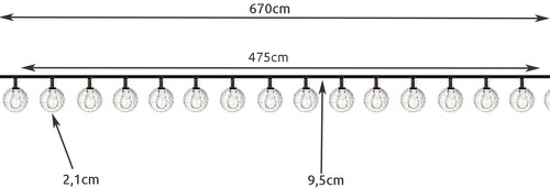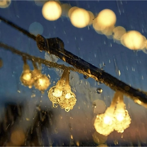 Girlanda emituje ciepłe żółte światło, co jest idealne do nastrojowego oświetlenia. Kulki rozmieszczone są w odległości 9,5 cm od siebie na długim zielonym przewodzie, który prawie niewidocznie wtapia się w otaczającą zieleń.