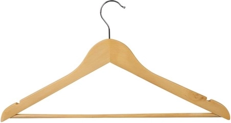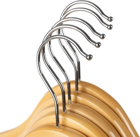 Przemyślany ergonomiczny kształt pomaga utrzymać naturalną linię odzieży i ogranicza gniecenie. Wycięte rowki na końcach ramion zapobiegają zsuwaniu się sukienek czy topów z wieszaka. Obrotowy metalowy hak ułatwia manipulację, a okrągły drewniany drążek idealnie nadaje się na spodnie, szale lub krawaty – więcej ubrań wygodnie zawiesisz na jednym wieszaku.