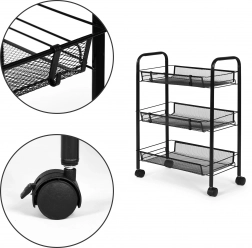 Dzięki obrotowym kółkom regał łatwo przesuniesz tam, gdzie jest akurat potrzebny. Dwa hamulce blokujące zapewnią bezpieczne ustawienie bez samoistnego przesuwania. Cztery praktyczne haczyki zwiększą przestrzeń do przechowywania o miejsce na ściereczki, gąbki, akcesoria czy torby.