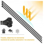Czarne opaski zaciskowe są wszechstronne i mogą być używane w wielu różnych sytuacjach, od organizacji kabli po mocowanie przedmiotów w domu, ogrodzie lub warsztacie. Opaski o szerokości 3,6 mm umożliwiają zastosowanie także w węższych przestrzeniach.