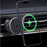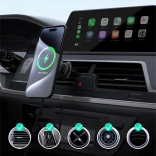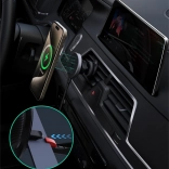 Korzystaj z wygodnego i stabilnego mocowania telefonu z szybkim ładowaniem bezprzewodowym 15 W. Magnetyczna technologia uchwytu pewnie utrzymuje urządzenie także na nierównościach i naładuje np. iPhone z 15 do 50% w około 30 minut. Eleganckie wykonanie z elementami ze szkła hartowanego świetnie komponuje się z wnętrzem auta.
