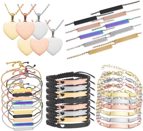 Przekształć pomysły w unikalną biżuterię i prezenty. Ten zestaw zawiera wybór zawieszek, naszyjników i bransoletek z wytrzymałej stali nierdzewnej, idealnej zarówno do delikatnych, jak i wyrazistych grawerów. Dzięki zalecanym parametrom łatwo uzyskasz spójne i czyste efekty.