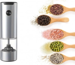 Ten elektryczny młynek do przypraw wprowadza komfort i efektywność do twojej kuchni. Wyposażony w wydajny i cichy silnik, potrafi szybko i efektywnie mielić różne rodzaje przypraw, od soli i pieprzu po egzotyczne mieszanki.