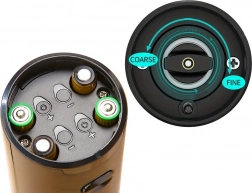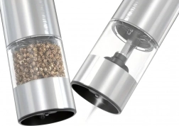 Młynek wyposażony jest w cichy silnik, który szybko mieli przyprawy od soli i pieprzu po egzotyczne mieszanki.