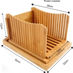 Bambusowa krajalnica do chleba umożliwia równomierne i bezpieczne krojenie kromek chleba, bagietek, ciast itp. Nie musisz obawiać się okruszków na blacie, ponieważ posiada tackę, na której się gromadzą. Okruszki możesz łatwo wysypać z tacki. Kompaktowa krajalnica nie zajmuje dużo miejsca, dzięki czemu zaoszczędzisz cenną przestrzeń na kuchennym blacie. Krajalnica wykonana jest z wysokiej jakości drewna bambusowego, bezpiecznego dla żywności. Została specjalnie zaprojektowana tak, aby zmieścił się w niej duży nóż do krojenia.