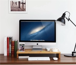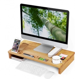 Elegancka bambusowa podstawka pod monitor unosi ekran do ergonomicznej wysokości, a jednocześnie służy jako praktyczny organizer. Oferuje przegródki na telefon, długopisy i drobiazgi, wydzielone miejsce na kubek oraz przestrzeń na klawiaturę i mysz pod podstawką. Naturalny wygląd i trwały bambus zapewnią porządek na biurku oraz wygodniejszą postawę podczas pracy.