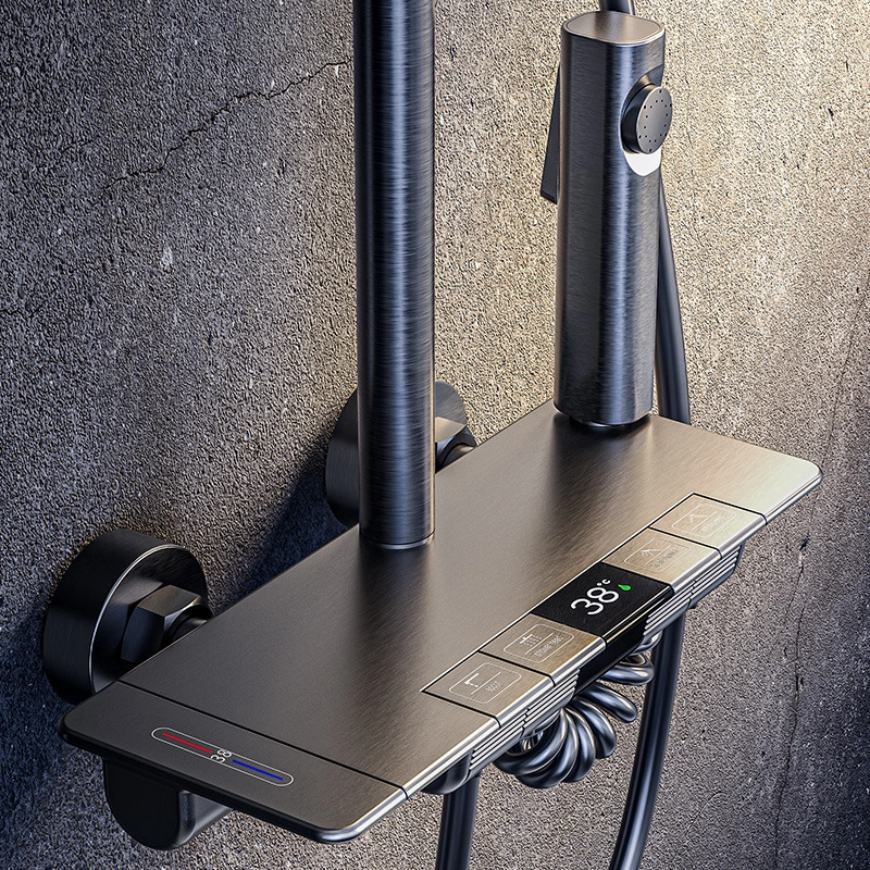 Inteligentny zestaw prysznicowy oferuje luksusowe doznania z precyzyjną kontrolą temperatury i wygodną obsługą. Idealnie pasuje do nowoczesnych łazienek, łącząc elegancję i funkcjonalność.
