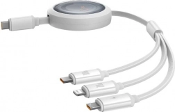 Koniec z poplątanymi przewodami i szukaniem właściwego złącza. BASEUS Free2Draw to praktyczny wysuwany kabel 3‑w‑1 ze złączami USB‑C, Lightning i Micro USB, dzięki któremu naładujesz telefony, tablety, słuchawki i inną elektronikę. Maksymalna moc PD 100 W przez USB‑C poradzi sobie także z laptopami wspierającymi Power Delivery, Lightning zapewnia 20 W, a Micro USB 10 W. Do szybkiej synchronizacji plików służy transfer danych 480 Mb/s.