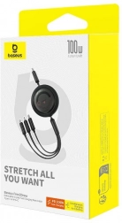 Uniwersalny kabel BASEUS Free2Draw 3w1 łączy szybkie ładowanie do 100 W, trzy złącza (USB‑C, Lightning, Micro USB) oraz wysuwaną konstrukcję z 4 długościami. Ładuje do trzech urządzeń jednocześnie i obsługuje transfer danych 480 Mb/s. Kompaktowa kaseta oszczędza miejsce, a inteligentny układ chroni Twoje urządzenia.