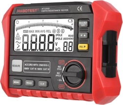 Tester rezystancji uziemienia Habotest HT2302 wyposażony jest w duży wyświetlacz LCD dla łatwego odczytu wyświetlanych wartości. Umożliwia pomiary w zakresie od 0Ω do 4,00kΩ z dokładnością i efektywnymi wynikami w dwubiegunowym lub trójbiegunowym trybie. Urządzenie jest odpowiednie do monitorowania rezystancji uziemienia i bezpieczeństwa elektrycznego.