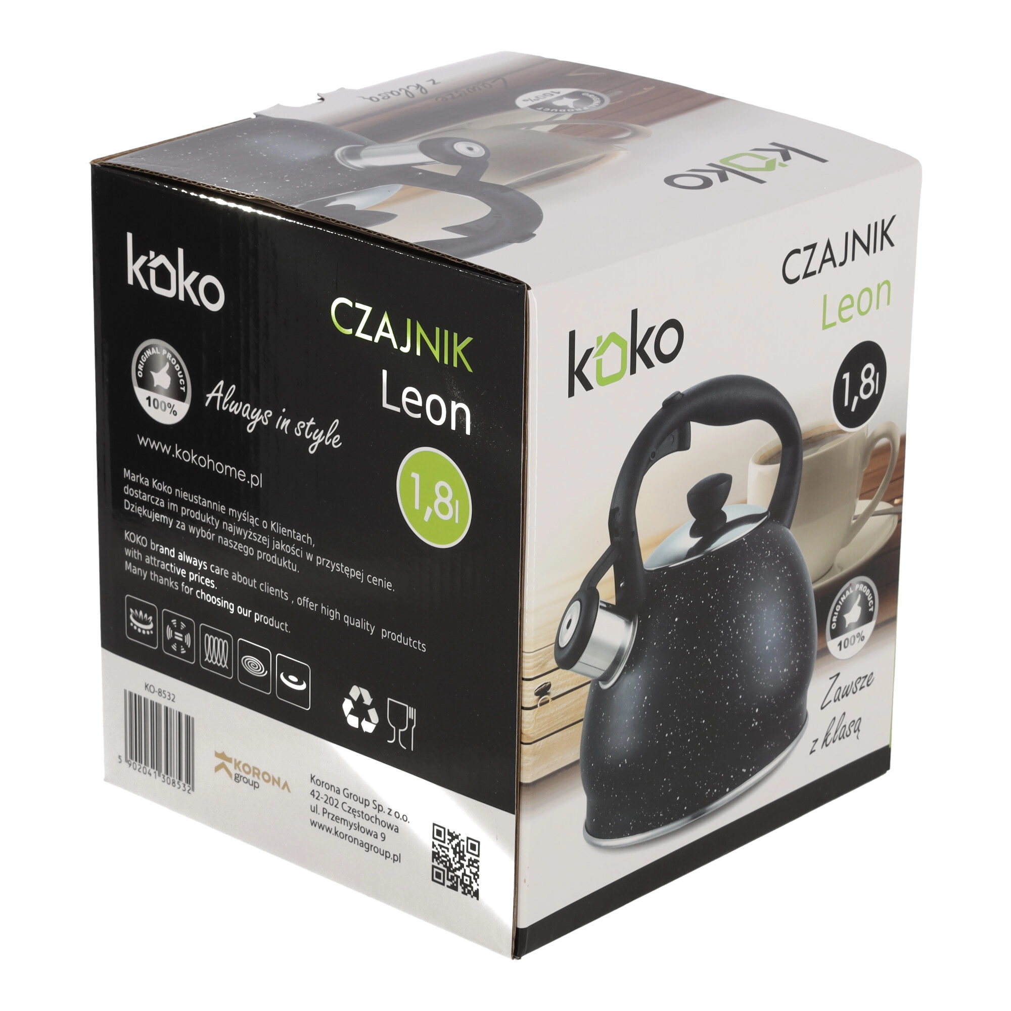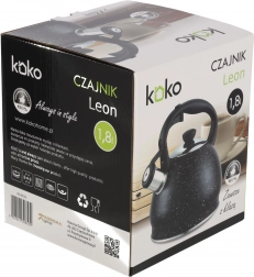 Spód czajnika jest odpowiedni do różnych typów kuchenek, w tym indukcyjnych, co czyni go uniwersalnym wyborem dla każdego domu. Dzięki wysokiej jakości wykonania i stylowemu wzornictwu czajnik KOKO LEON jest nie tylko praktyczny, ale także stanowi dekoracyjny element w kuchni.