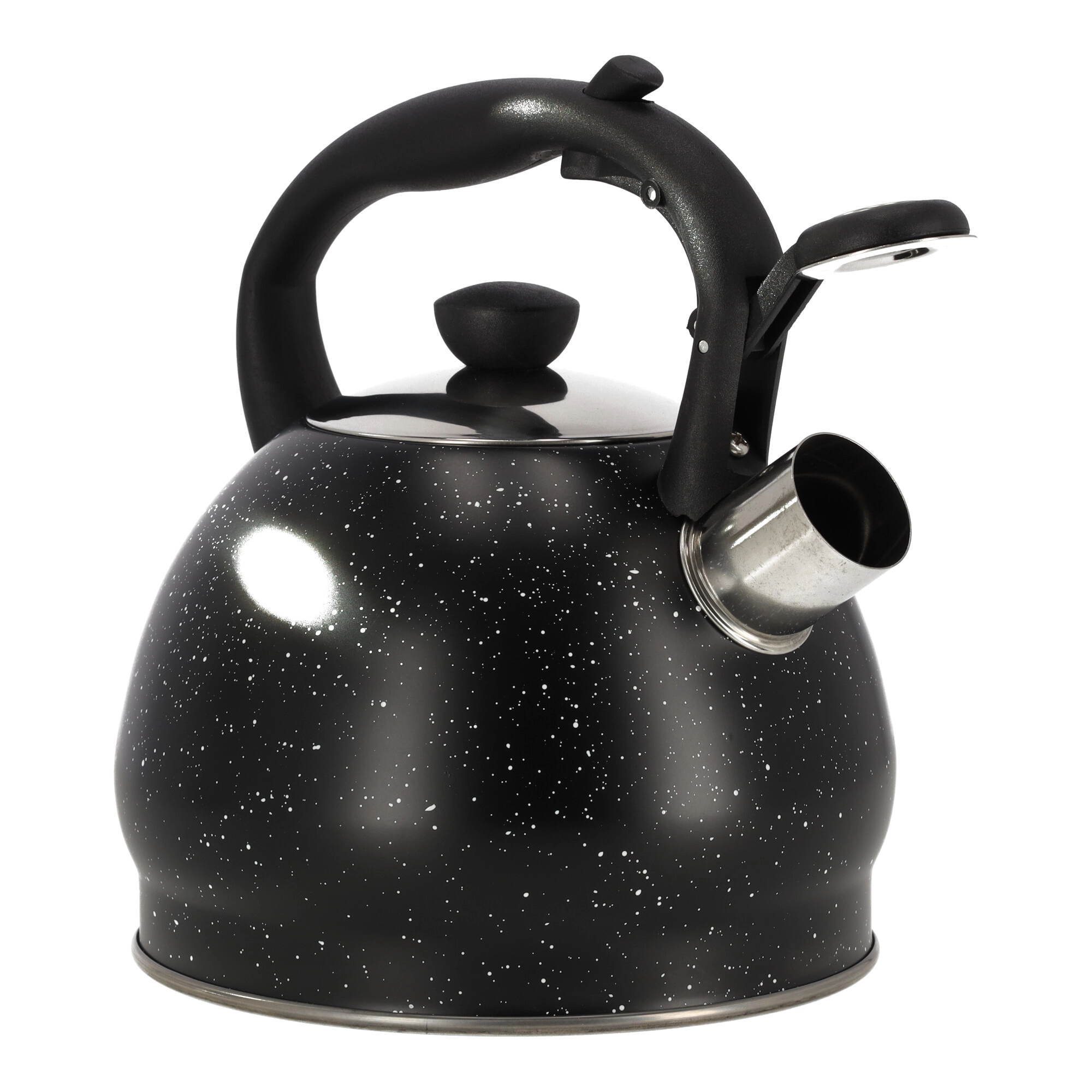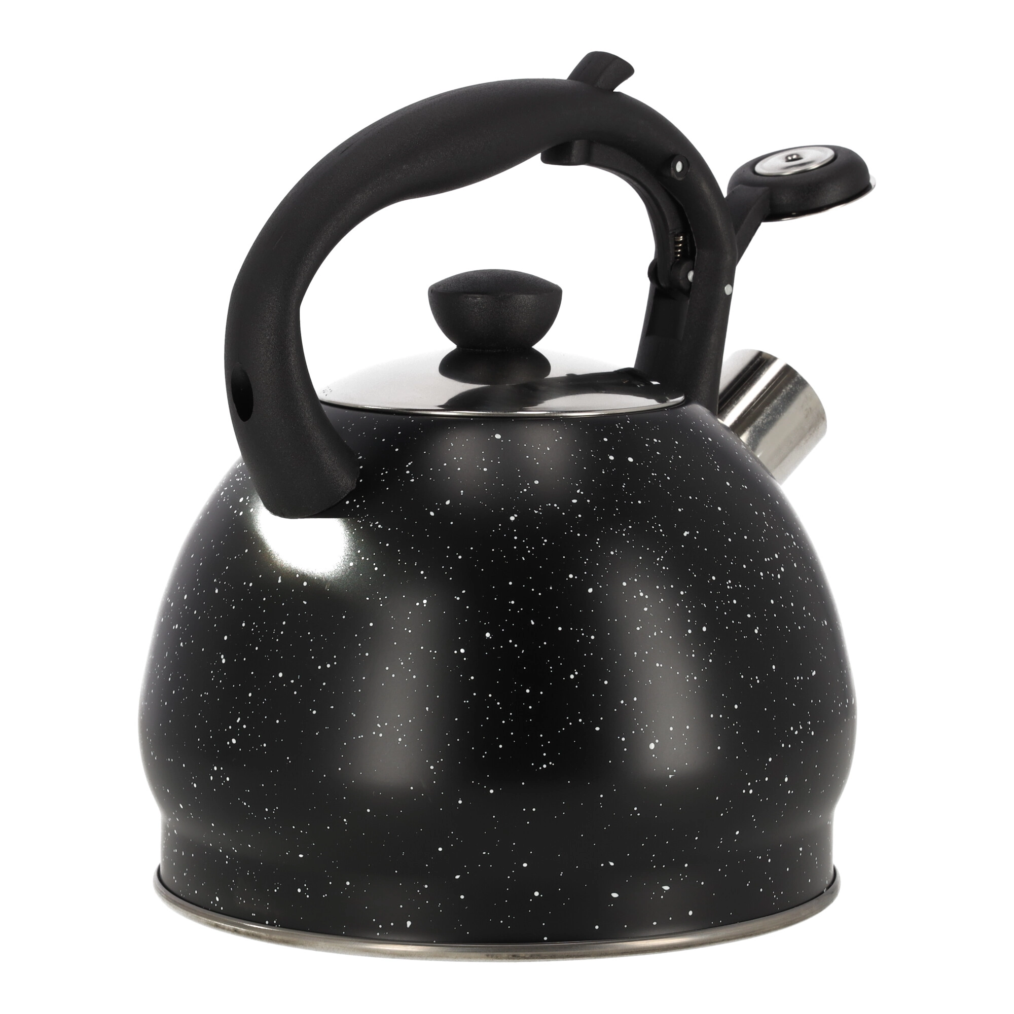 Czajnik wyposażony jest w ergonomiczną rączkę dla wygodnego użytkowania oraz solidny gwizdek, który sygnalizuje osiągnięcie temperatury wrzenia wody. Dzięki temu zawsze będziesz wiedzieć, kiedy woda jest gotowa do zaparzenia ulubionej herbaty lub kawy.