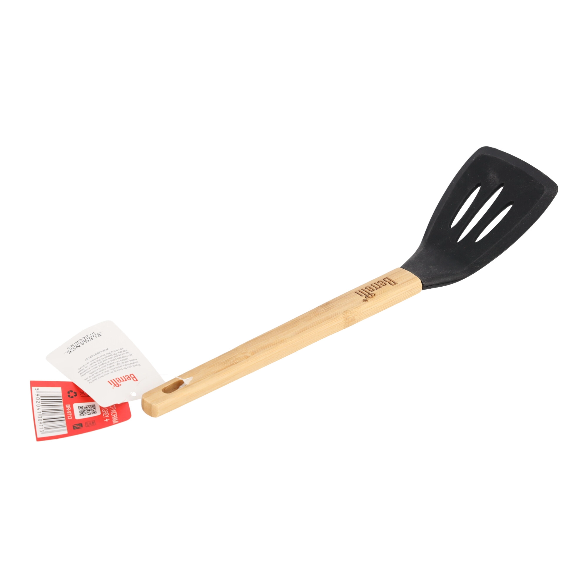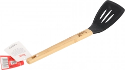 Rączka łopatki wykonana jest z ekologicznego drewna bambusowego, które jest nie tylko przyjazne dla środowiska, ale także wygodne w użytkowaniu. Doskonale leży w dłoni, zapewnia pewny chwyt i zapobiega wyślizgiwaniu się podczas prac kuchennych.