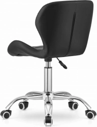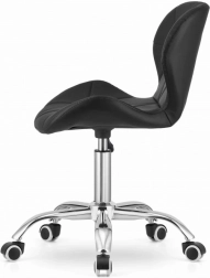 To nowoczesne krzesło biurowe świetnie sprawdzi się w pokoju dziecięcym, pracowni, biurze i recepcji. Tapicerka z wytrzymałej eko skóry z subtelnym przeszyciem prezentuje się elegancko, jest łatwa w czyszczeniu i na długo zachowuje wygląd. Pięcioramienny chromowany krzyżak z gumowanymi kółkami zapewnia stabilność oraz delikatny, cichy przesuw po podłodze.