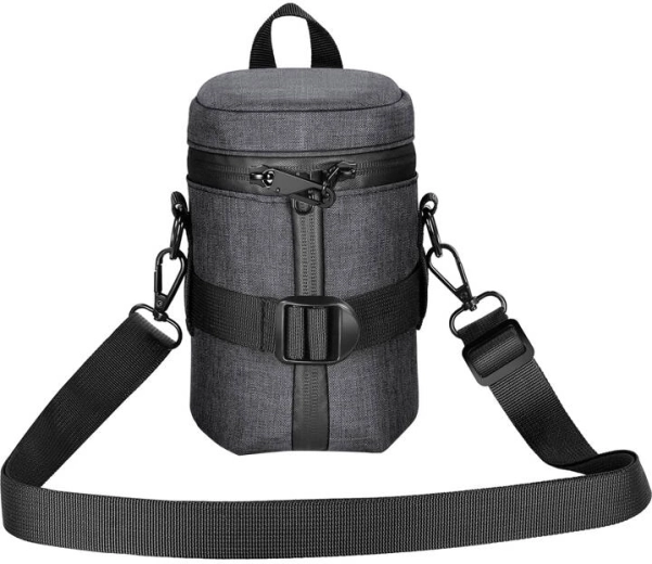 Boczny zamek pozwala zwiększyć pojemność o 27 mm, dzięki czemu wygodnie mieszczą się typowe obiektywy do lustrzanek i bezlusterkowców o wymiarach do ok. 100 × 140 mm (średnica × wysokość). Lekka konstrukcja z wytrzymałego poliestru jest odporna na zachlapania, a dzięki tylnej klamrze, paskowi na rzep i paskowi na ramię torbę łatwo przypniesz do paska lub plecaka albo wygodnie przeniesiesz na ramieniu.