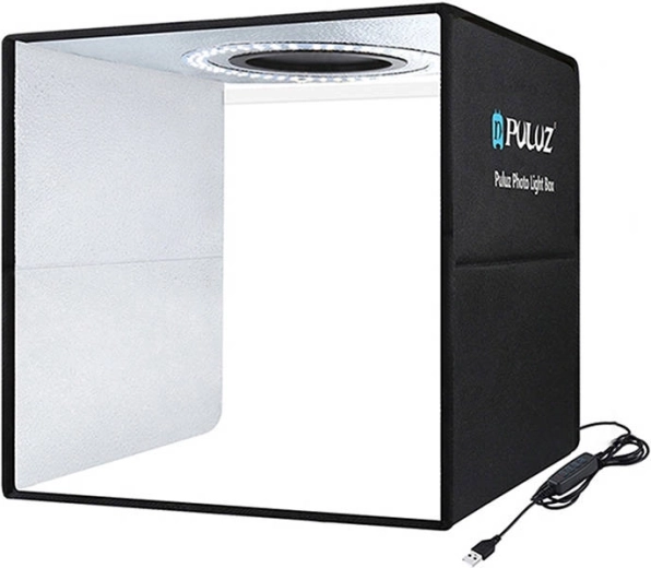 W zestawie znajduje się 6 kolorowych teł (białe, czarne, zielone, czerwone, niebieskie, pomarańczowe) do szybkiego dopasowania sceny. Namiot łatwo się składa, jest zasilany przez kabel USB (2 m) i umożliwia fotografowanie z wielu kątów, w tym ujęcia z góry. Wewnętrzna powierzchnia refleksyjna równomiernie rozprasza światło, zapewniając spójne rezultaty bez przepaleń.