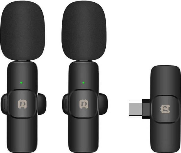 - 2× mikrofon, 1× odbiornik USB‑C, 2× kabel do ładowania USB‑C, klipsy