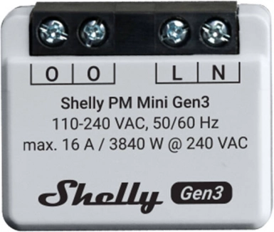 Shelly PM Mini Gen3 zestaw 2 liczników zużycia. Wi‑Fi/Bluetooth, 16 A, miniaturowe wymiary, szybka instalacja, kompatybilność z Home Assistant i MQTT.