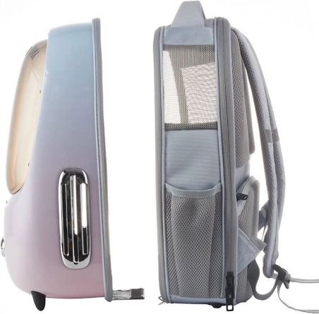 Plecak jest wyposażony w wyjmowaną poduszkę dla optymalnego komfortu zwierząt o wadze do 8 kg. Praktyczne boczne kieszenie pozwalają na przechowywanie drobnych akcesoriów. Produkt waży jedynie 1,4 kg, co czyni go lekkim i łatwym do przenoszenia dodatkiem.