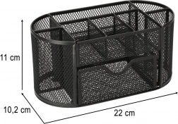Solidna metalowa konstrukcja w eleganckim czarnym kolorze wytrzyma codzienne użytkowanie. Wymiary organizera 22 × 11 × 10,2 cm oszczędzają miejsce na biurku.