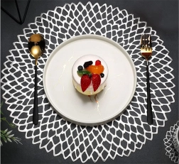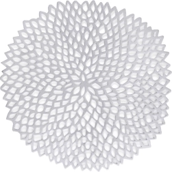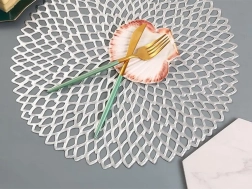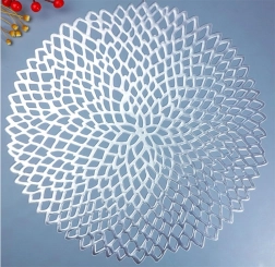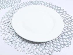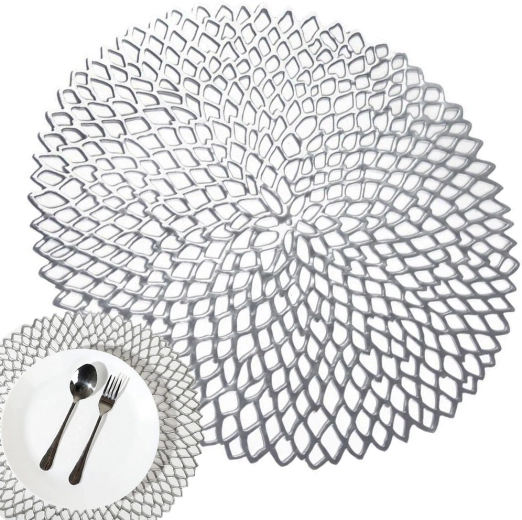 Stylowa ażurowa podkładka w eleganckim srebrnym kolorze chroni powierzchnię stołu przed zarysowaniami i plamami, a jednocześnie stanowi wyrazisty element dekoracyjny. Dzięki wytrzymałemu tworzywu sztucznemu jest lekka, praktyczna i wodoodporna, dlatego idealnie nadaje się do codziennego użytku i odświętnych okazji.