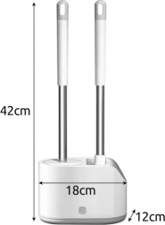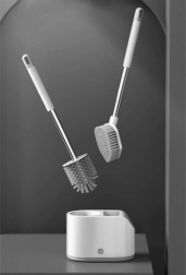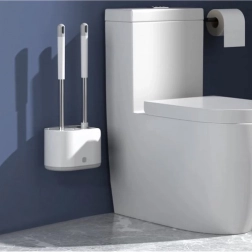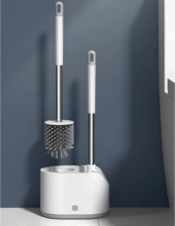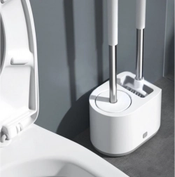 Praktyczny zestaw 2 szczotek toaletowych RUHHY do codziennej czystości i higieny. Łączy okrągłą główkę z TPR do delikatnego czyszczenia oraz płaską, spiczastą główkę do rogów i krawędzi. Dzięki pojemnikowi ociekowemu z przyciskiem i uchwytowi ściennemu oszczędza miejsce i utrzymuje łazienkę w suchości. Trwałe materiały PP, stal nierdzewna, TPR i PS gwarantują długą żywotność.