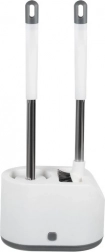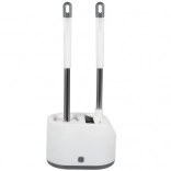 W zestawie znajduje się zamknięty ociekacz z praktycznym przyciskiem do higienicznego wylewania wody oraz samoprzylepny uchwyt ścienny, który oszczędza miejsce na podłodze. Metalowe rączki ze stali nierdzewnej są trwałe i łatwe w utrzymaniu, biało/szara kolorystyka pasuje do każdej łazienki.