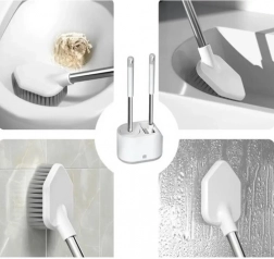 Rączki ze stali nierdzewnej, główki z TPR i PP oraz dołączony samoprzylepny uchwyt ścienny zapewniają długą żywotność, łatwą pielęgnację i porządek w łazience.