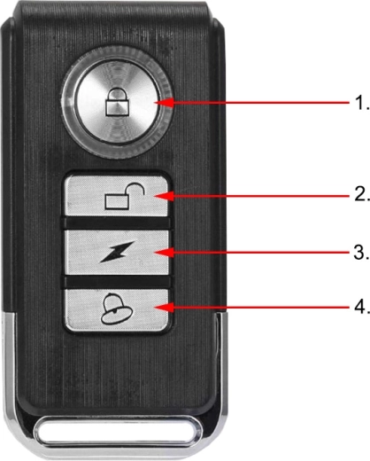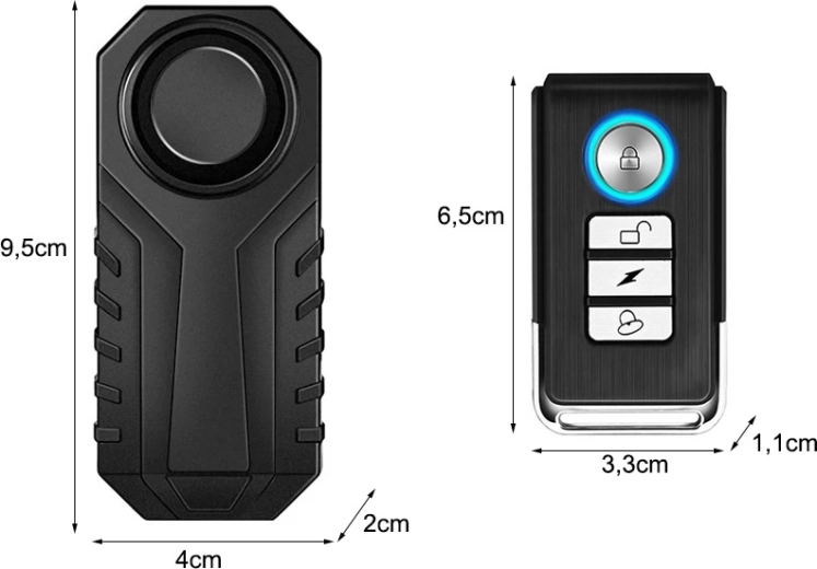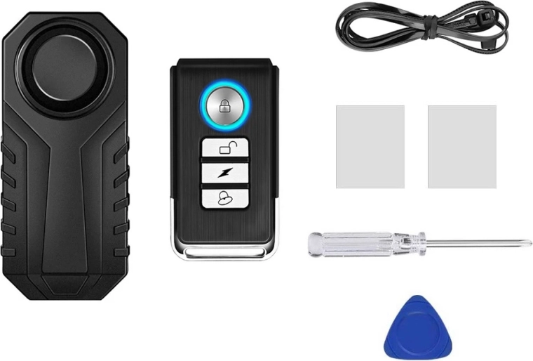 W zestawie znajduje się pilot do wygodnej aktywacji i dezaktywacji alarmu. Dzięki kompaktowemu designowi i łatwej instalacji alarm szybko można zamontować na ramie roweru lub w ukrytym miejscu na motocyklu.