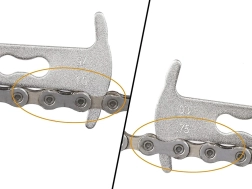 Wystarczy wsunąć miernik między ogniwa łańcucha i natychmiast widać wynik. Idealny do szybkiej kontroli w domu i w terenie.