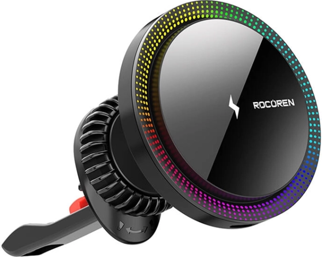 Bezprzewodowa ładowarka samochodowa Rocoren jest idealna dla tych, którzy cenią sobie wygodę i estetykę. Oferuje szybkie ładowanie w zakresie od 5W do 15W, wspiera protokoły szybkiego ładowania QC3.0 i PD2.0, co zapewnia natychmiastowe naładowanie twojego telefonu. Ładowarka łatwo mocuje się do otworów wentylacyjnych samochodu i dobrze pasuje do wnętrza każdego auta dzięki eleganckiemu czarnemu designowi z podświetleniem LED.
