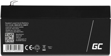 Nazwa: | Bezobsługowy akumulator AGM VRLA Green Cell AGM41 12V 1,3Ah (do systemu alarmowego, kasy, zabawek) |