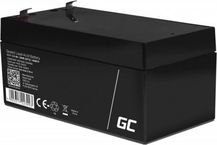 - Bezobsługowy akumulator AGM VRLA Green Cell AGM41 12V 1,3Ah (do systemu zabezpieczeń, kasy, zabawki).