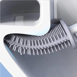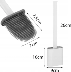 Odkryj praktyczną i higieniczną pielęgnację toalety. Silikonowa szczotka do WC z pełną, nieprzeciekającą podstawą zapobiega przedostawaniu się wody na podłogę, dzięki czemu łazienka pozostaje sucha i czysta. Dzięki elastycznemu silikonowemu włosiu łatwo dociera także pod rant miski, a zabrudzenia do niego nie przywierają.