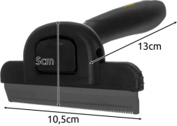 Ostre ząbki ze stali nierdzewnej skutecznie usuwają nadmiar podszerstka bez uszkadzania wierzchniej warstwy sierści.