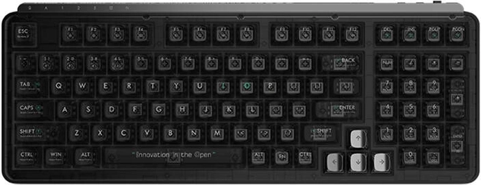 Mechaniczna klawiatura MIIIW Black 98 łączy elegancki przezroczysty wygląd z solidną konstrukcją i najwyższymi technologiami. Transparentne czarne korpus z PC oraz metalowe akcenty tworzą futurystyczny design, a 48‑bitowe podświetlenie RGB nada Twojemu biurku wyjątkowy klimat. Dzięki układowi 98% zyskujesz kompaktowy format bez kompromisów w liczbie klawiszy.