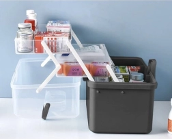 Praktyczny i wytrzymały organizer na leki z dwupoziomowymi, rozkładanymi półkami oraz pojemną dolną komorą zapewnia porządek we wszystkich akcesoriach medycznych. Dzięki materiałowi PP jest solidny, nietoksyczny i łatwy do umycia, przezroczysta pokrywa umożliwia szybką kontrolę zawartości, a bezpieczne zamykane wieko chroni przed przypadkowym otwarciem. Z ergonomicznym uchwytem do łatwego przenoszenia sprawdzi się w domu i w podróży.
