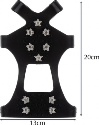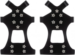 Na każdej nakładce rozmieszczono liczne metalowe kolce, które wgryzają się w lód lub ubity śnieg i poprawiają trakcję podczas chodzenia. Założenie zajmuje chwilę – nałóż przez czubek i przeciągnij na piętę. Lekka konstrukcja nie wpływa na komfort chodzenia, a jednocześnie wyraźnie zwiększa pewność kroku.