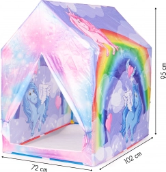 Stwórz dzieciom ich własną przystań dla fantazji i zabawy. Namiot do zabawy IPLAY z motywem tęczy i jednorożców oferuje wygodne i prywatne miejsce do czytania, zabawy i odpoczynku. Dzięki lekkiej i stabilnej konstrukcji łatwo go ustawisz w salonie, pokoju dziecięcym lub na tarasie.