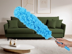 Miotełka jest bardzo wygodna w użyciu. Wystarczy ją prosto wydłużyć, aby dosięgnąć na wysokości, a po sprzątaniu znowu skrócić dla łatwego przechowywania.