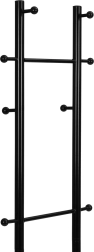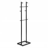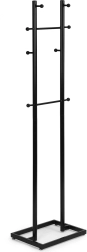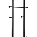 Porządek na wyciągnięcie ręki. Ten nowoczesny, wolnostojący wieszak w matowej czerni świetnie wpasuje się do każdego przedpokoju, garderoby czy biura. Metal malowany proszkowo zapewnia odporność na zarysowania i długą żywotność, a przemyślane rozmieszczenie 8 haczyków na różnych wysokościach wygodnie pomieści płaszcze, kurtki, torby i kapelusze.