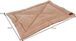 Dzięki wodoodpornemu spodowi z ekoskóry legowisko dobrze znosi wilgoć i zabrudzenia. Jest składane i lekkie, więc łatwo zabrać je na piknik, do auta czy na wakacje. Uniwersalne wykonanie pasuje dla psów, kotów, królików i innych mniejszych pupili, a naturalna kolorystyka wkomponuje się w każdy wystrój.