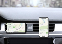 Uchwyt wystarczy wsunąć w kratkę nawiewu. Silikonowe szczęki trzymają stabilnie i nie uszkadzają powierzchni, telefon wystarczy zbliżyć, a magnesy natychmiast go zabezpieczą.