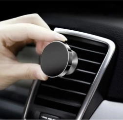 Kompaktowy magnetyczny uchwyt samochodowy mocowany do kratki nawiewu zapewnia stabilne i bezpieczne trzymanie telefonu dzięki silnym magnesom. Oferuje obrót 360° i nachylenie 90° dla idealnego kąta widzenia, łatwy montaż bez narzędzi oraz stylowy, minimalistyczny design łączący metal i silikon, który nie rysuje kratki.