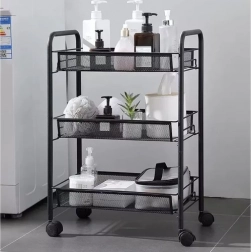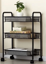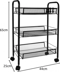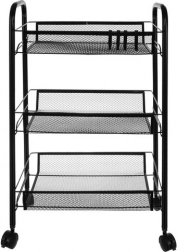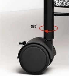Utrzymuj porządek ze stylem. Ten kompaktowy, a zarazem stabilny regał z malowanej proszkowo stali został zaprojektowany do codziennego użytku. Otwarte koszowe półki zapewniają przegląd i cyrkulację powietrza, dzięki czemu idealnie nadają się do żywności, kosmetyków i środków czystości. Cztery wysokiej jakości kółka umożliwiają płynne przemieszczanie, z czego dwa mają zintegrowany hamulec dla bezpiecznego ustawienia w miejscu.